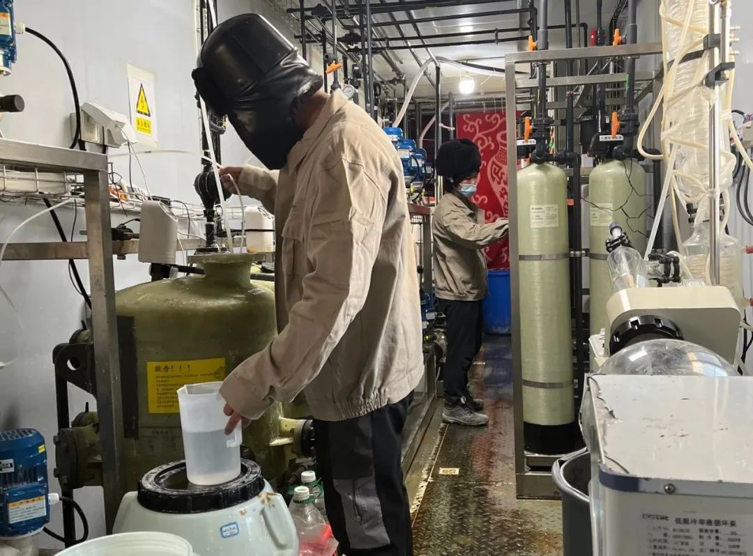 项目现场工作开展更是困难重重。工程师方春立、胡钦城到达拉果错盐湖畔后,即刻投入到项目的工艺开发实验工作中。但由于天气极度严寒,抽取湖水的管路结冰,导致湖水抽不上来,难以进行采样;采卤点靠近岸边,水质波动大,泥沙、卤虫等杂质类多,水质混浊;现场供电偶尔不足,会导致设备中断……各种状况的出现也为实验的顺利开展增加了难度。
